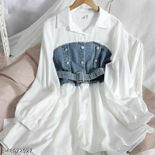 Fabric: Denim Sleeve Length: Three-Quarter Sleeves Sizes: Free size ( Bust size 30 Inch, length 33 Inch)